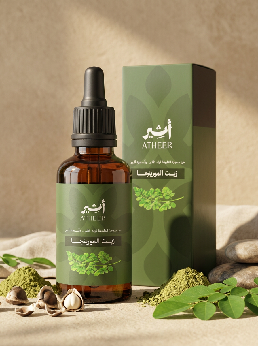 زيت المورينجا غني بعناصر فعّالة، أهمها حمض الأوليك اللي بيساعد على الترطيب العميق وحبس الرطوبة جوا الجلد والشعر لفترات أطول، وفيتامينات E و A المعروفين بدورهم في حماية الجلد من علامات التقدم في السن ودعم تجديد الخلايا، بجانب مضادات الأكسدة الطبيعية اللي بتحارب تأثيرات البيئة الضارة وبتحافظ على صحة ونضارة البشرة والشعر مع الاستخدام المستمر.