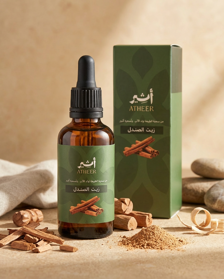 زيت الصندل الأصلي يستخلص من خشب الصندل المعمر بالتقطير بالبخار عشان نحافظ على مركب السانتالول (Santalol) اللي بيمنحه ريحة خشبية دافية وفوايد مذهلة، بفضل تركيبته الغنية بالسانتالول ومضادات الأكسدة الطبيعية، بيهدي البشرة ويقلل الاحمرار والتهيج، بيرطبها بعمق، ويحفز تجديد الخلايا ليحميها من التجاعيد والخطوط الدقيقة.